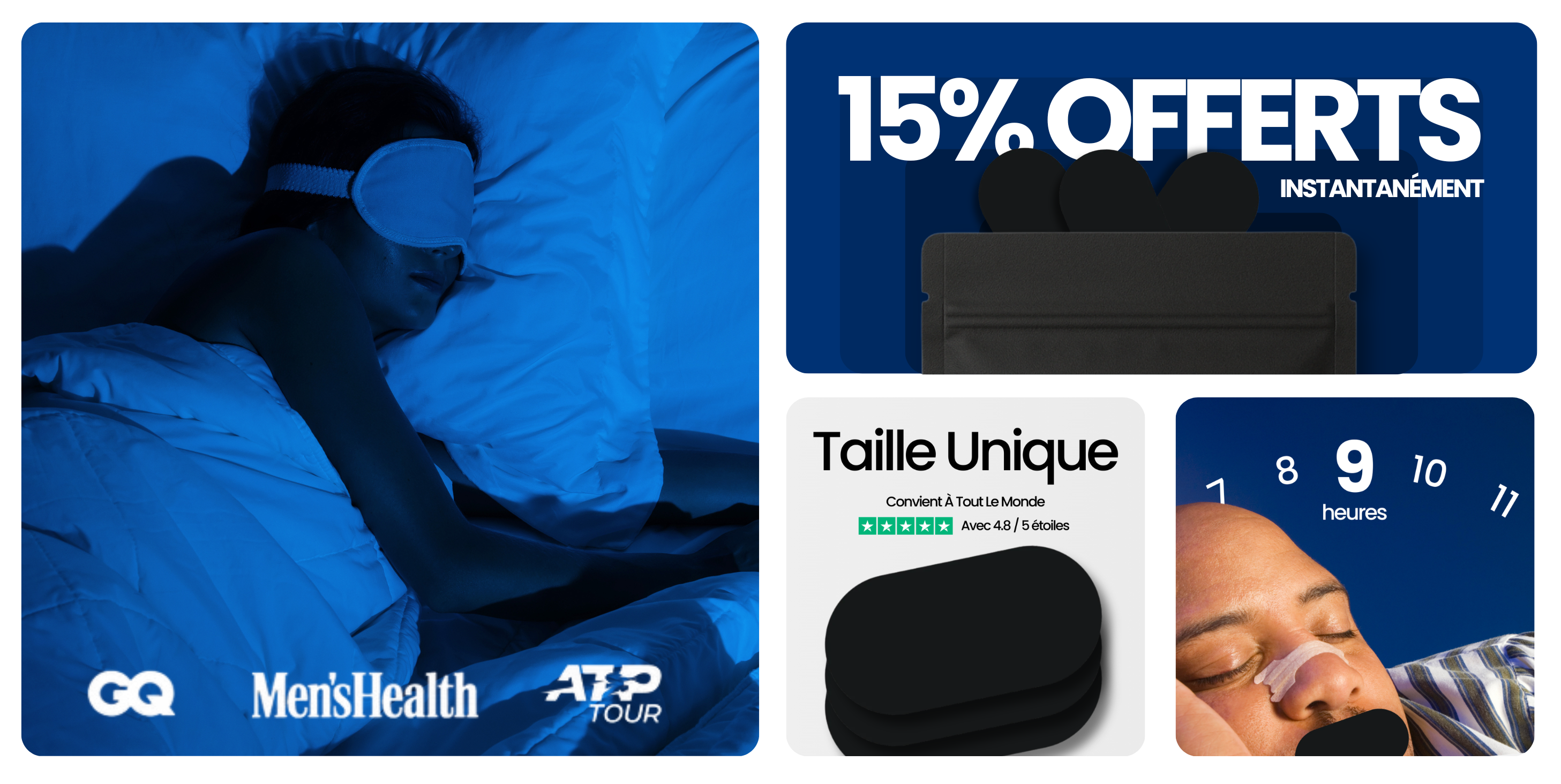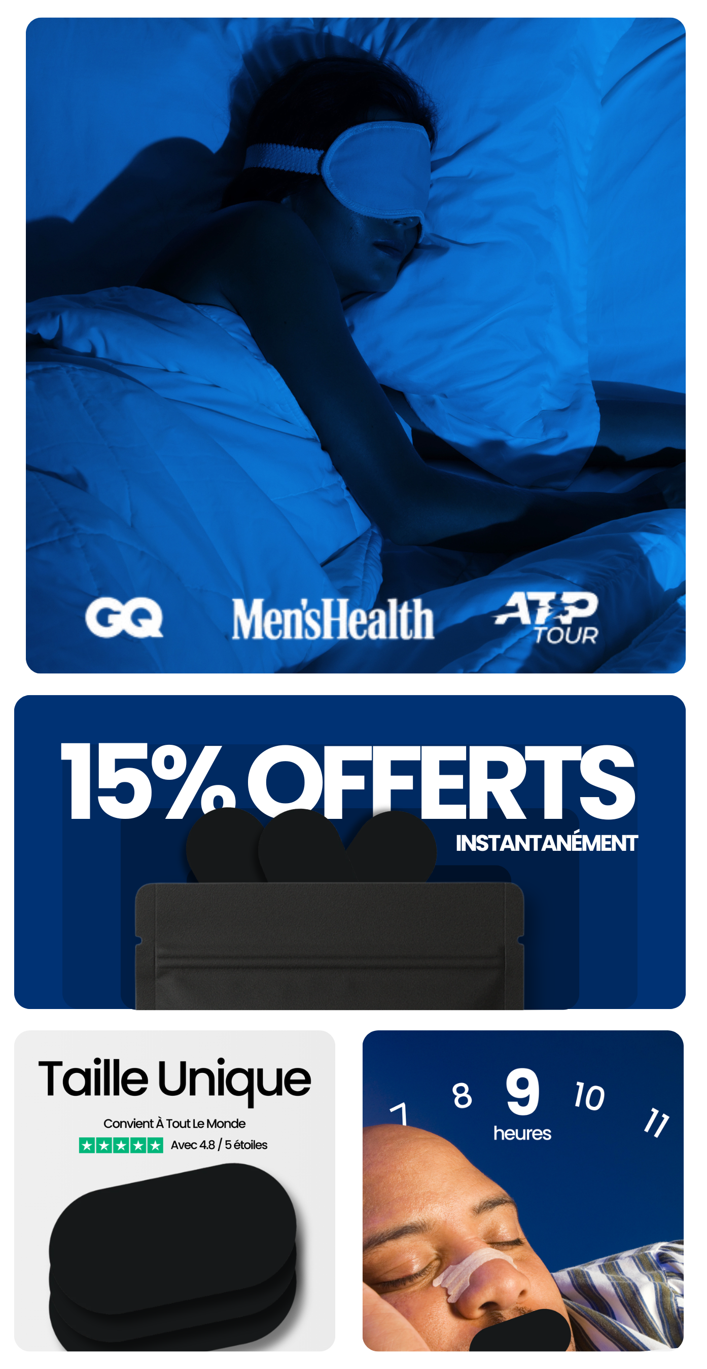 Idéal si vous respirez souvent par la bouche, avez la bouche sèche la nuit, ou voulez ancrer la respiration nasale et améliorer la qualité du sommeil. Peaux sensibles : faites un patch test 30 min.