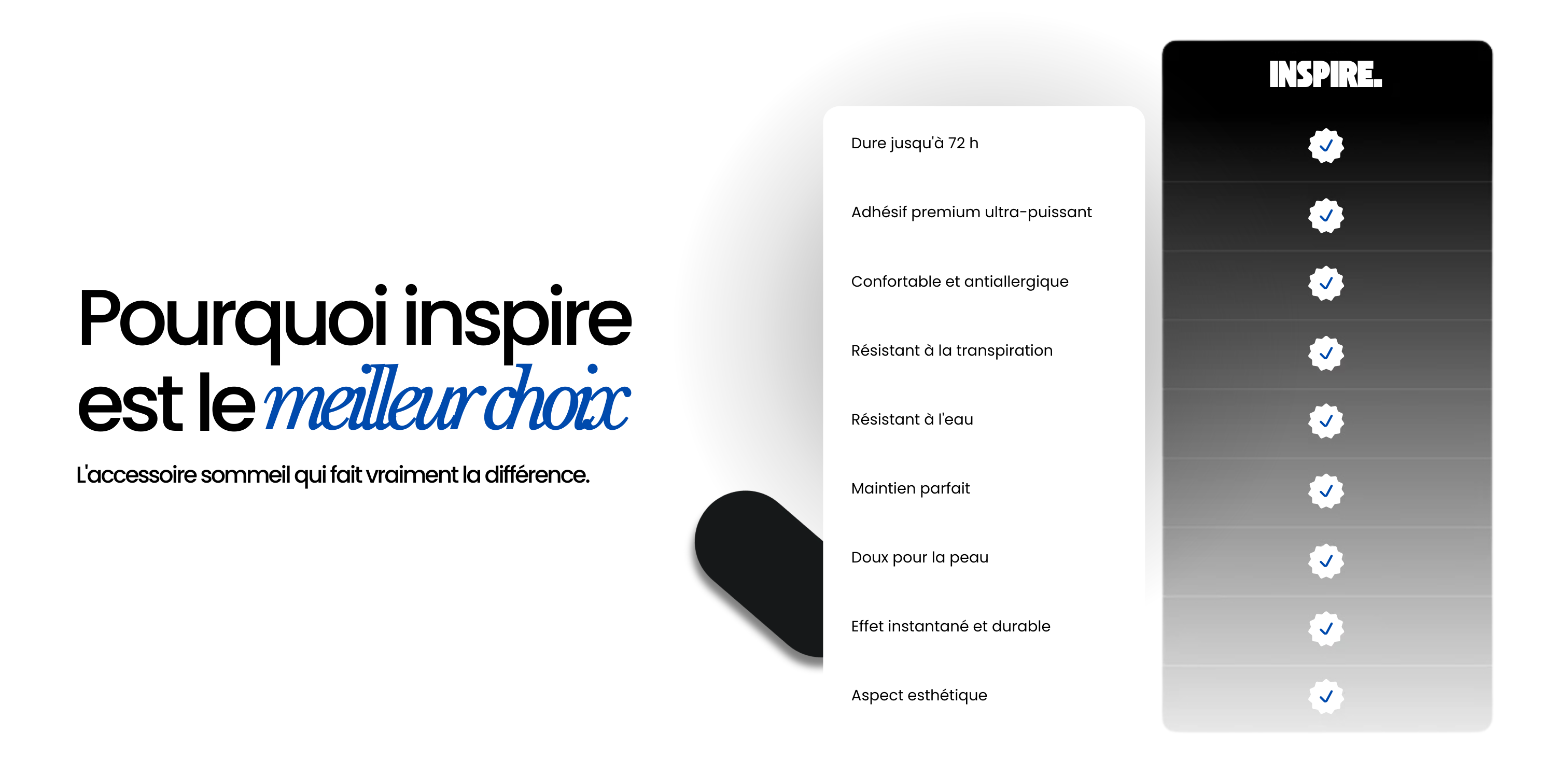 Une solution prouvée contre les ronflements et les troubles du sommeil. Conçu avec des matériaux confortables, Inspire favorise une respiration nasale nocturne optimale, contribuant ainsi à un sommeil de qualité.