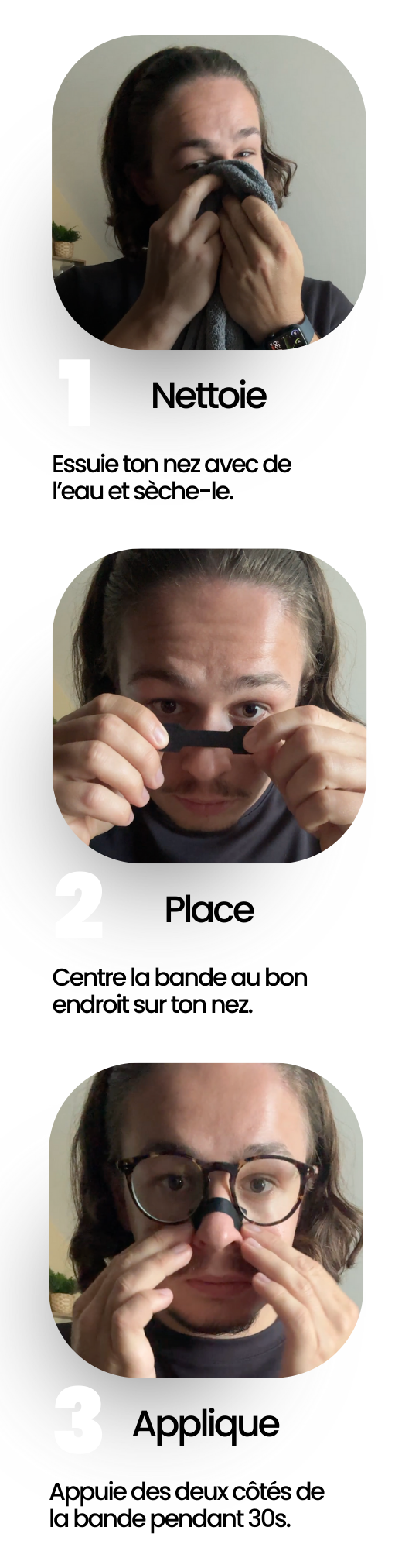 - Positionne la bande juste au-dessus des narines